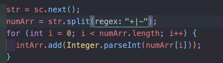 덧셈뺄셈 식이 입력되면 +와 - 기호를 기준으로 숫자 문자열을 자르려고 했는데 에러가 발생.