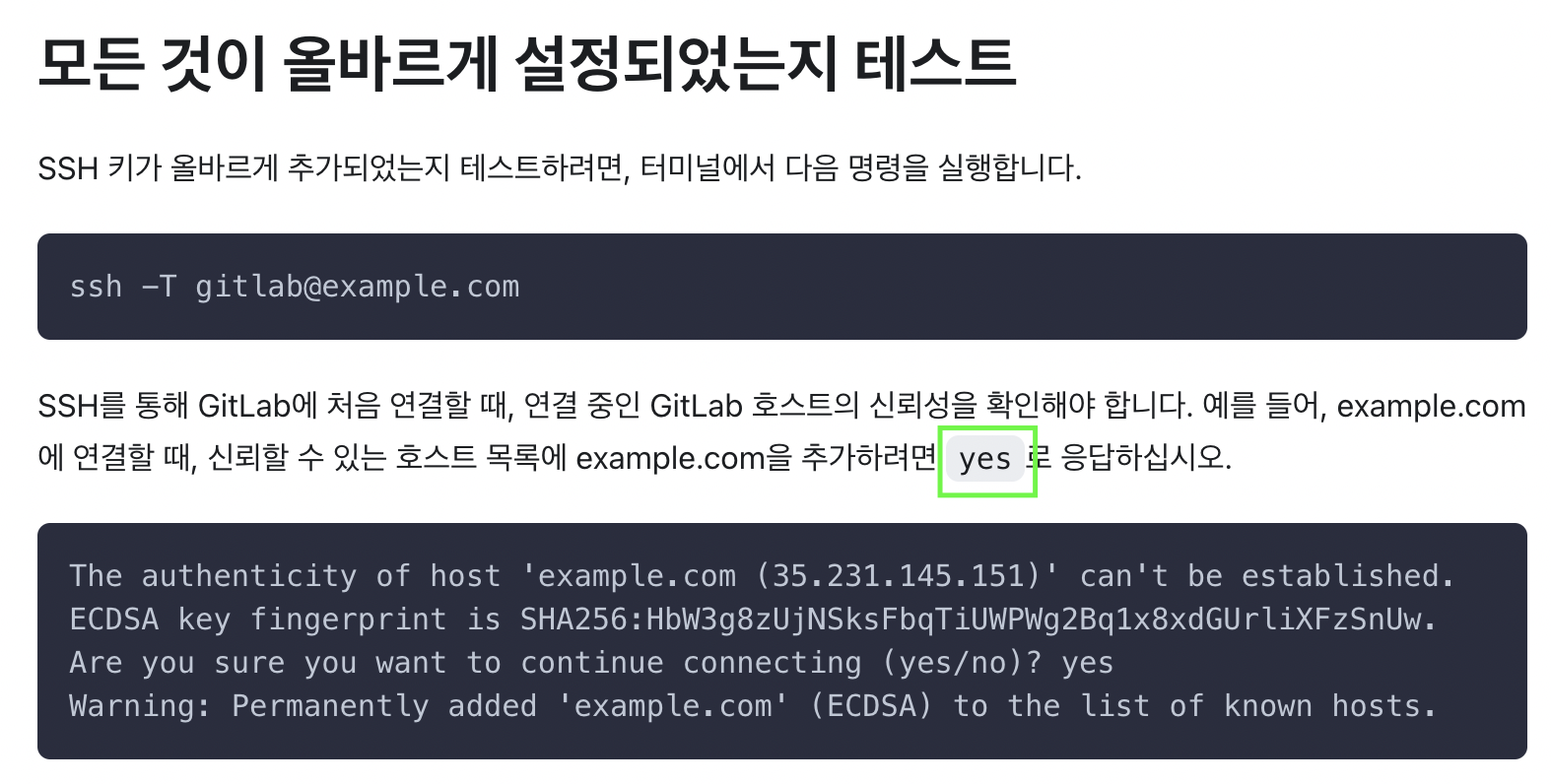 마지막으로 터미널에서 테스트해볼때 아래와 같은 상황이 나오는데 yes해주면 됩니다.