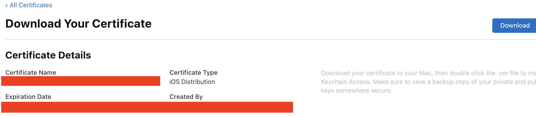 Certificate를 다운 받은 후