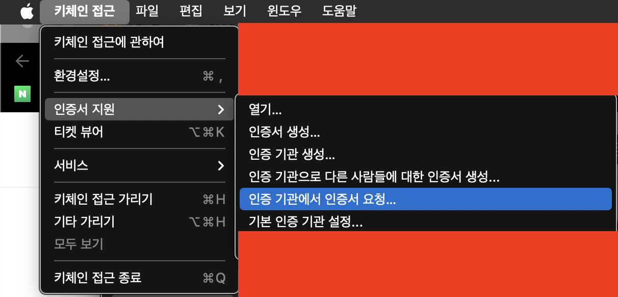 바로 팀장 계정으로 인증서를 만들기 시작합니다.(반드시 팀장 계정으로... 삽질 주의)
