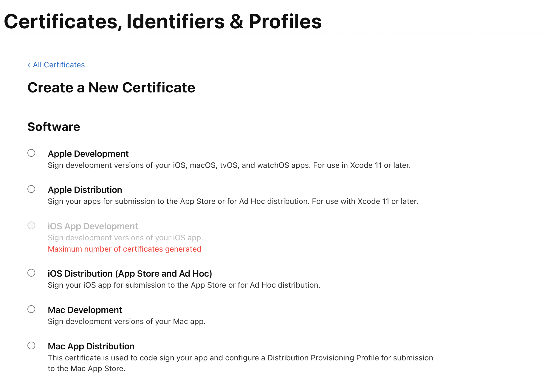 인증서 요청 파일을 사용해서 Certificate(배포와 개발 각각 진행)를 만들어줍니다.